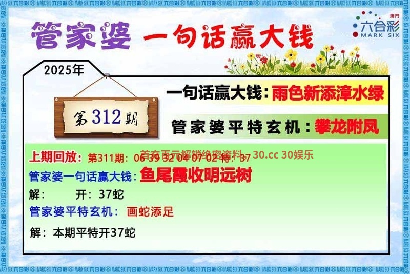| 318期:一句话赢大钱【更新中】 解料:更新中 综合:更新中 |